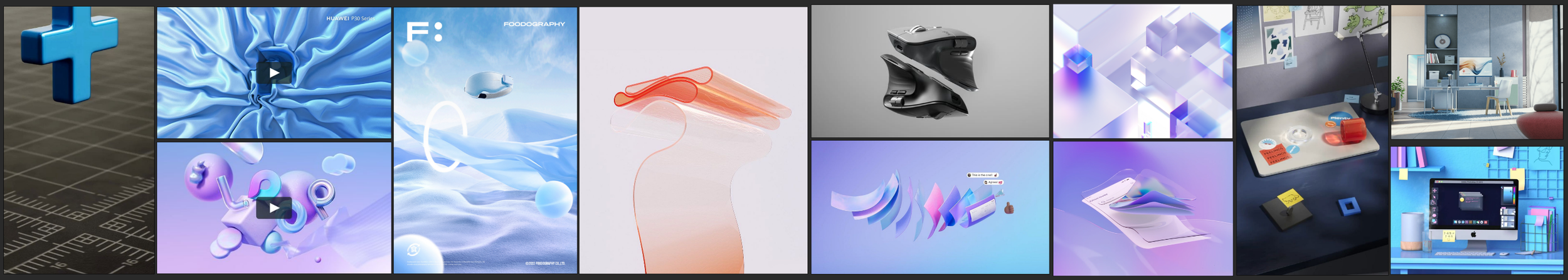 When I had the shots sketched, I started thinking about the design. As always PureRef and Pinterest were my go-to tools for this. I’ve tried to find some references to the mood I had in my mind, something inspired by Microsoft's design team work, but slightly less stylistic. Also, Wes Cockx https://cream3d.com/ is a huge inspiration to me, so the color choise was obvious.